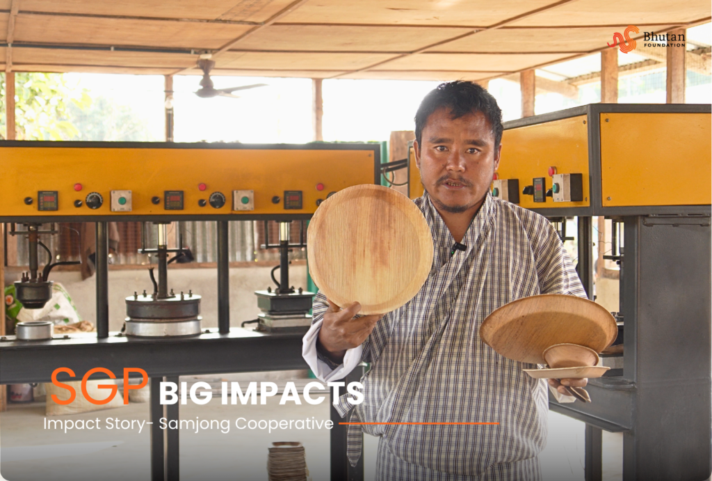 The impact became visible through expanded market reach. Samjong supplied eco-friendly plates to the Haa Quinoa Festival last year and additionally delivered about 10,000 plates for the 118th National Day celebration in Bumthang, marking a major milestone for the cooperative and for Langchenphug’s contribution to Samjong.
