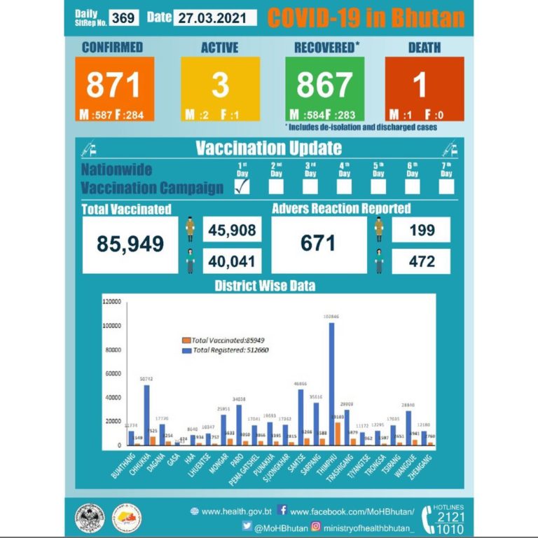 March 27, 2020: Situational update from the Ministry of Health, Royal Government of Bhutan