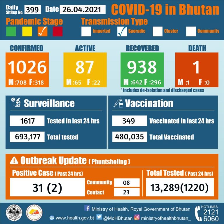 March 26, 2020: Situational update from the Ministry of Health, Royal Government of Bhutan