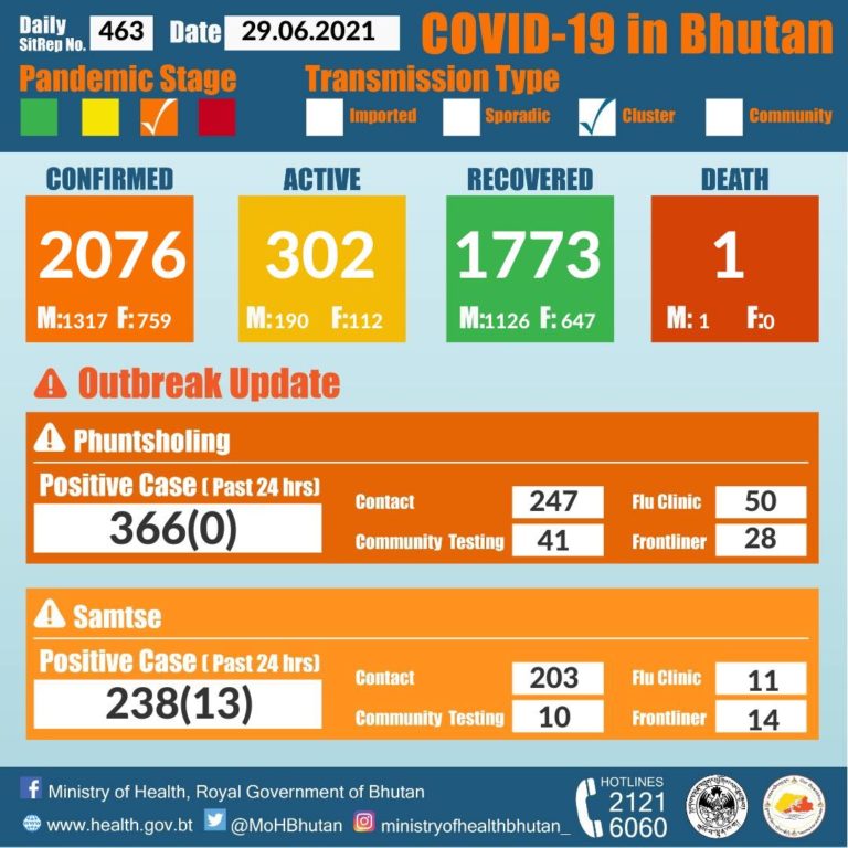 Phuntsholing : 3 Flu Clinic, 6 Contact, 1 Frontliner & 1 Imported